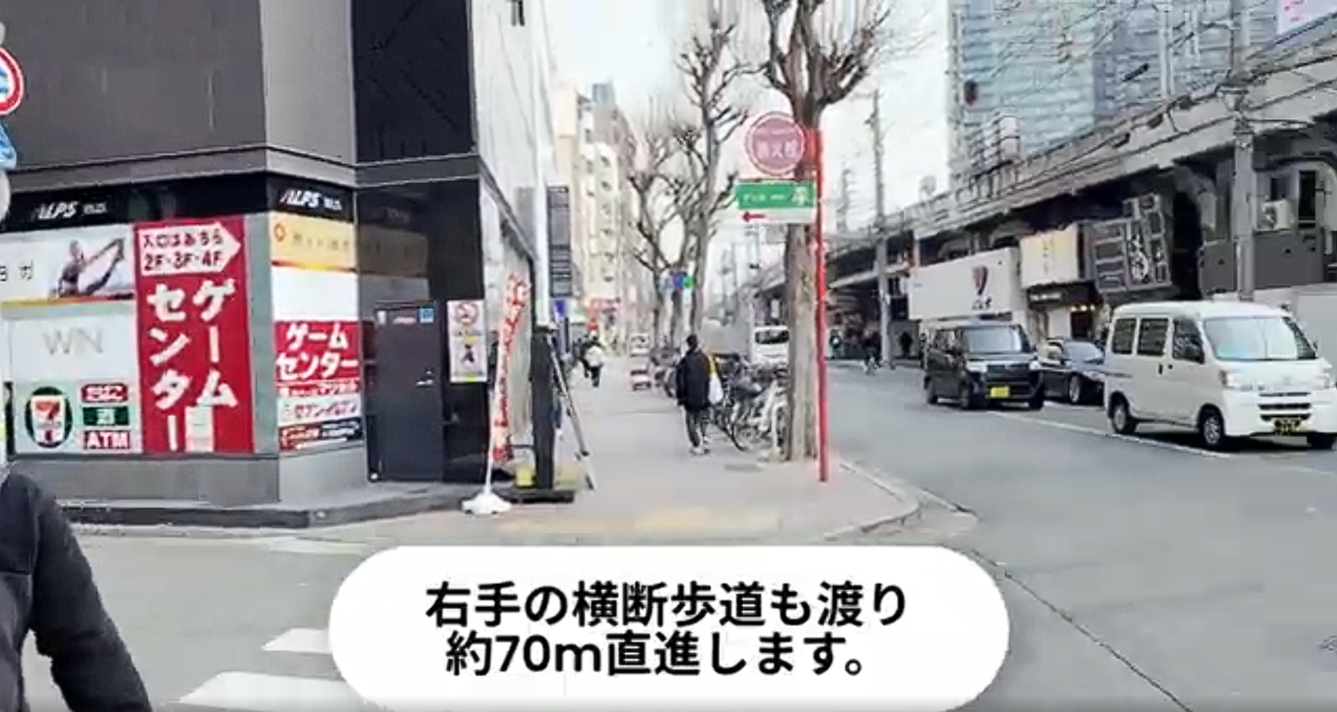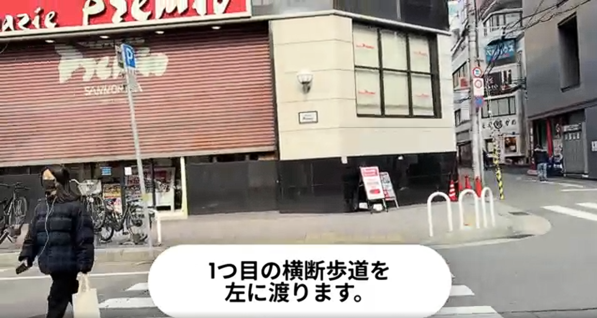 - 交差点を左、パチンコ屋さん方面へ渡ります。